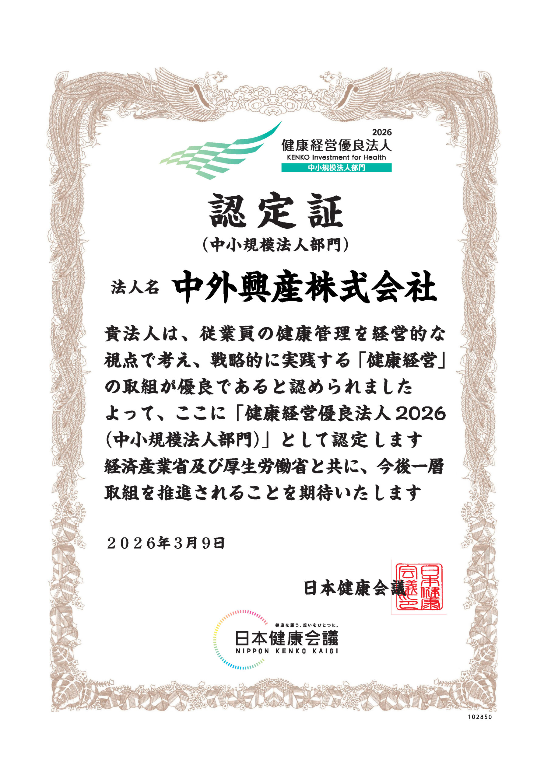 健康事業所宣言証明書